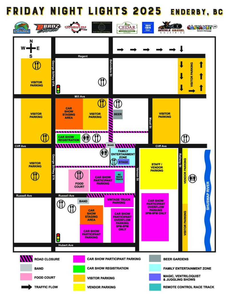 Friday Night Lights returns to Enderby’s downtown core on Friday, August 15, featuring more than 200 classic cars, food trucks galore, live music, a variety of performers and new this year…remote control car races!
